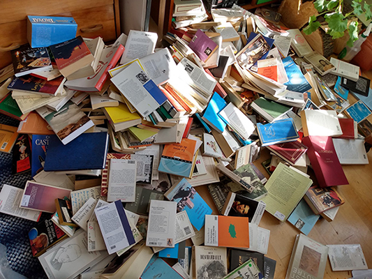 J'invite ici Eve Pouliot-Mathieu, Daphnée La Rose Noire, Maxime Max Leclerc et Hugo Valencia à réagir à la photo d'une boîte de livres qui sont partis de ma vie récemment!