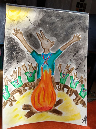 Voici chère Eve ce que ton invitation créative a éveillé en moi. Le scoutisme a été pour moi tellement riche en découvertes et expériences. Ce que j'y ai trouvé de plus précieux, ce fut l'acceptation de tous dans leur unicité. Ce que je retrouve aussi avec vous tous dans le projet BD.
